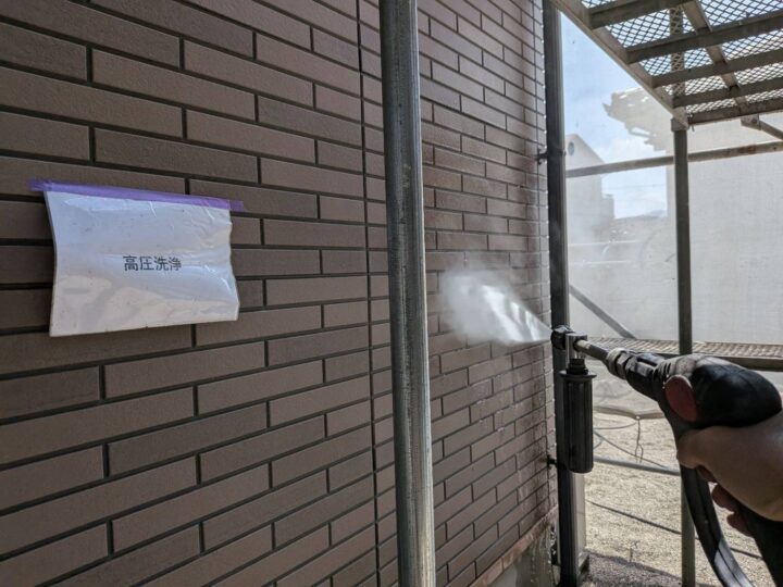 高圧洗浄を行っております。しっかり行う事で品質のよい塗装工事が可能になります。