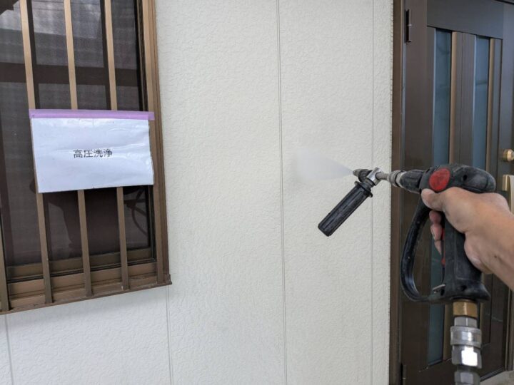 高圧洗浄を行っております。しっかり行う事で品質のよい塗装工事が可能になります。