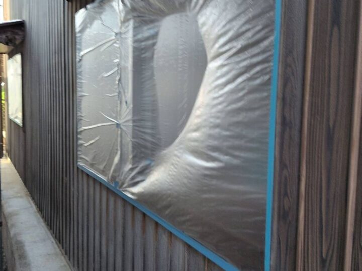 塗らない部分、塗料の飛散してはいけない部分はビニール等で養生しておきます。またテープ養生をしっかり行う事で養生を外した際綺麗なラインが出て仕上がりがきれいになります。