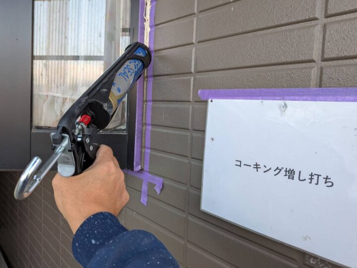 全てのサッシ周りはテープ養生後増し打ちを致しております。コーキング打ち替え