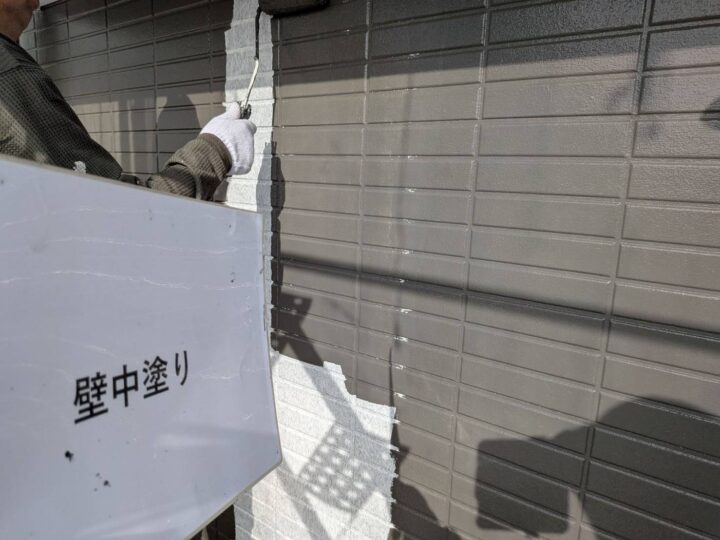 施工では、サイディングの目地や下地の状態をしっかり確認し、下処理を丁寧に行ったうえで、塗膜の厚みと仕上がりの美しさを重視して塗装しています。