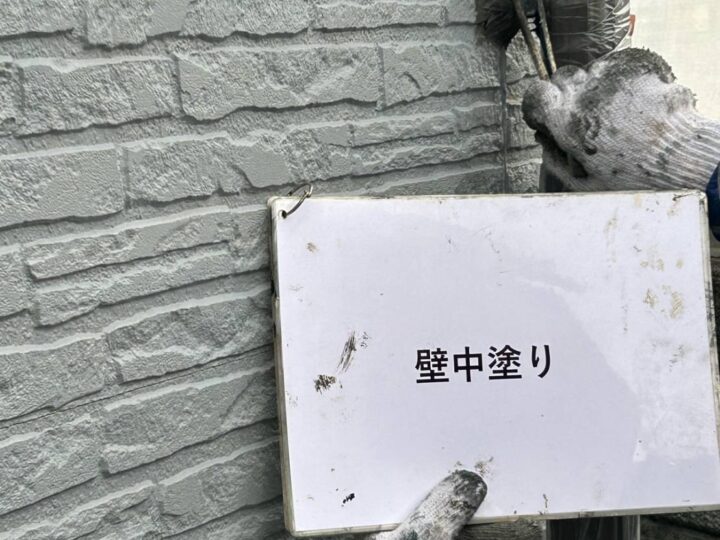 今回は外壁材がサイディングボードですので、上塗り材と外壁の密着性を高める専用のシーラーを塗装致しております。