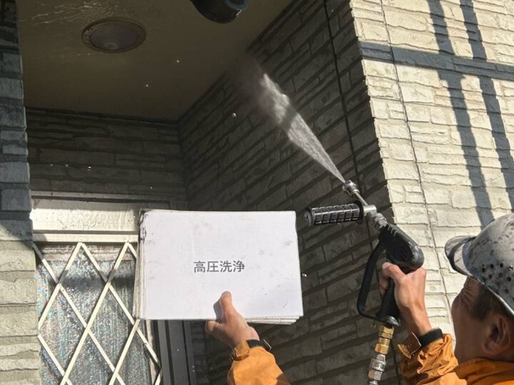 高圧洗浄を行っております。しっかり行う事で品質のよい塗装工事が可能になります。