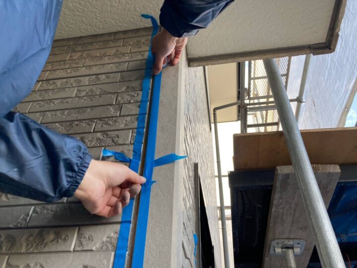 塗らない部分、塗料の飛散してはいけない部分はビニール等で養生しておきます。またテープ養生をしっかり行う事で養生を外した際綺麗なラインが出て仕上がりがきれいになります。